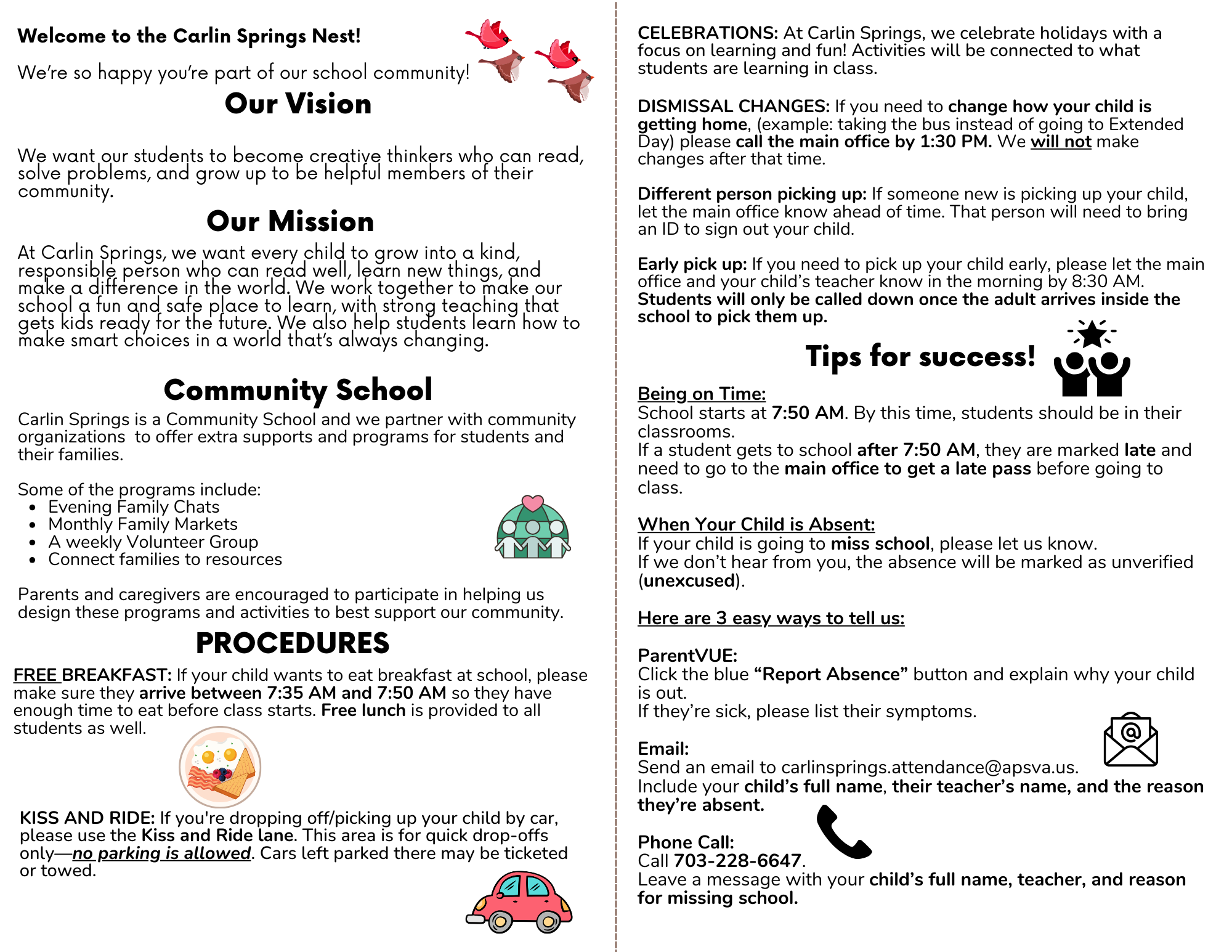 Discover what makes Carlin Springs such a special place! Bus Transportation Provided. Pizza dinner for all! Children's activities in the gym. Learn about our Title I program.